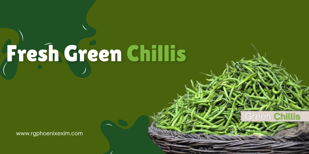 Green chillies are an essential part of many cuisines worldwide, known for their spicy and sharp flavor. They are long, thin, and vibrant green in color, used both raw and cooked in dishes.